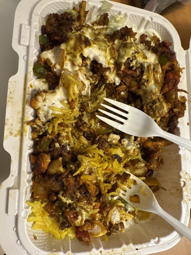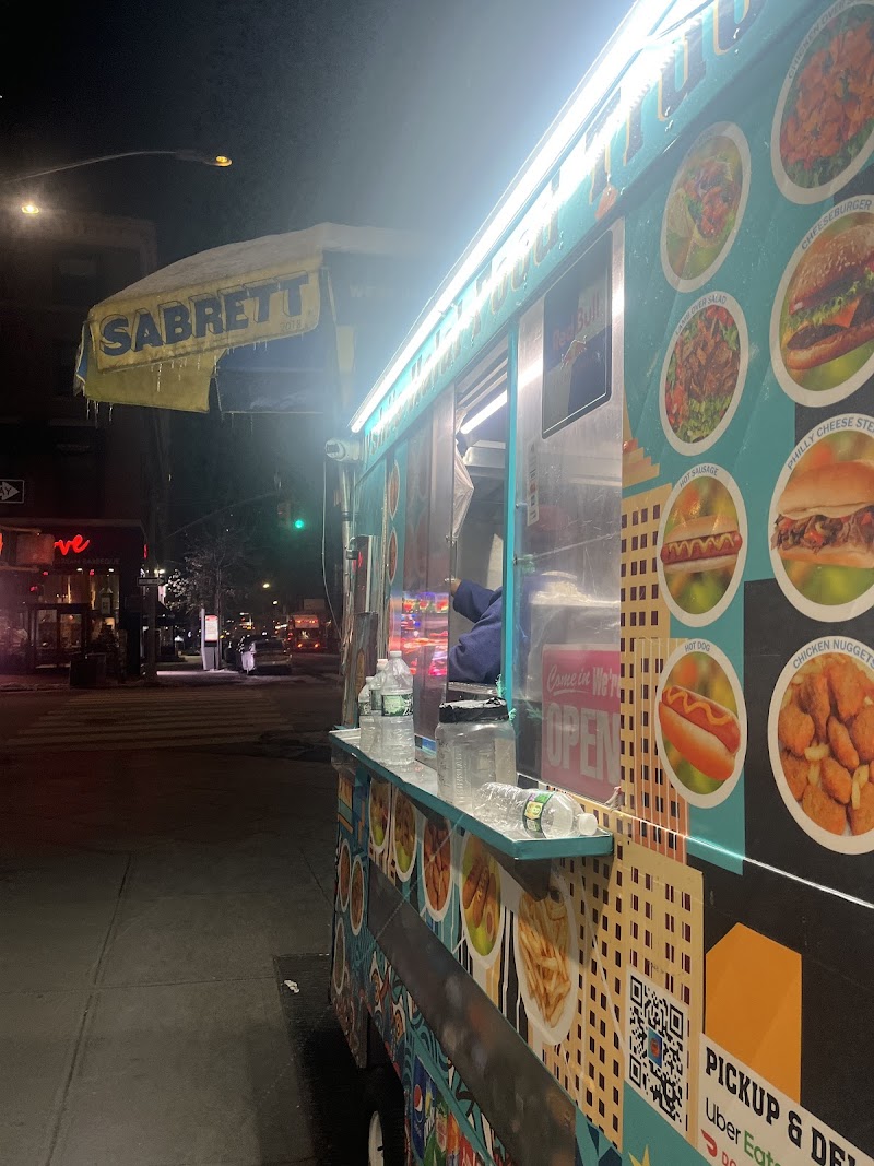 "small food truck planted Broadway and 32nd. the tiny cart serving up a menu of Middle Eastern styled rice platters as well as sandwiches. the cart looks clean and well-maintained, and is open from afternoon to night, and much later on Friday and Saturday nights. solid spot for Middle Eastern styled meat over rice to-go. ordered the chicken over rice is well-seasoned. the rice is flavorful. typically i get both the white sauce & hot sauce on top. the chicken over rice is $9 + tip the grill man is friendly and doesn't rush your food."