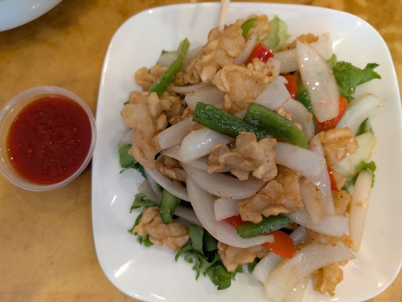 "Would likely get 5 stars if I never ordered online. In the restaurant the food is amazing. They have a selection of sauces: soy, hoisin, sriracha. Takeout? Nothing. Not a good look. Also, I absolutely love the chicken wing curry appetizer. I order the chicken curry entree hoping it would be just as good. Very little flavor and mostly onions (photo of just the onions I picked out included.) I'll be back to the restaurant but really hoping I remember to never order it to go again."
