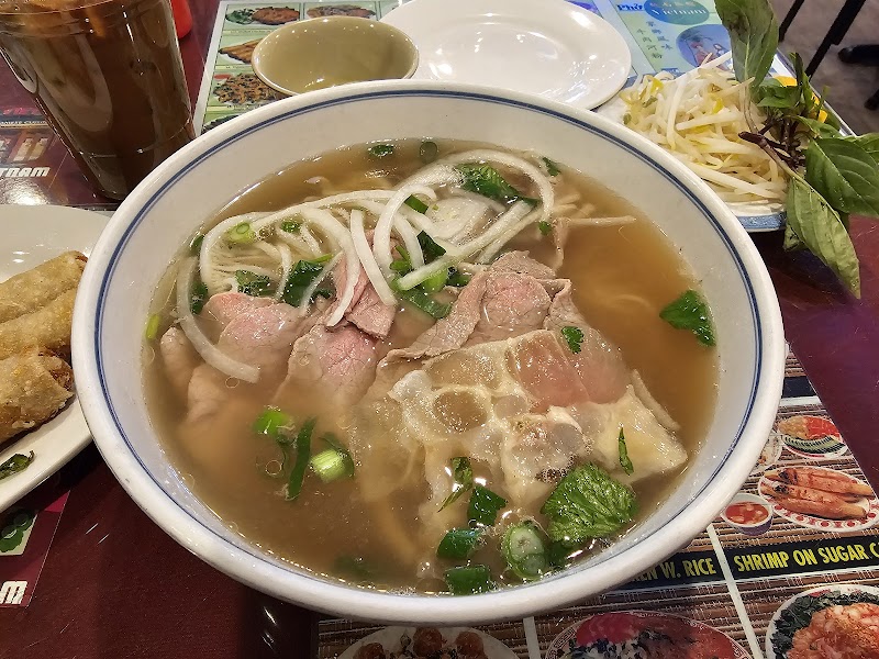 "This is my favorite local pho spot. The staff is friendly and the space is clean and open. I sometimes come in just for a Vietnamese iced coffee, which is $5.50. The pho averages 16 a bowl. The pho is very good. It is a good portion size and the broth is rich and flavorful. They have all the versions of pho- tripe, beef balls, etc. The fried spring rolls are delicious also. This spot is very good for a very good bowl of pho."