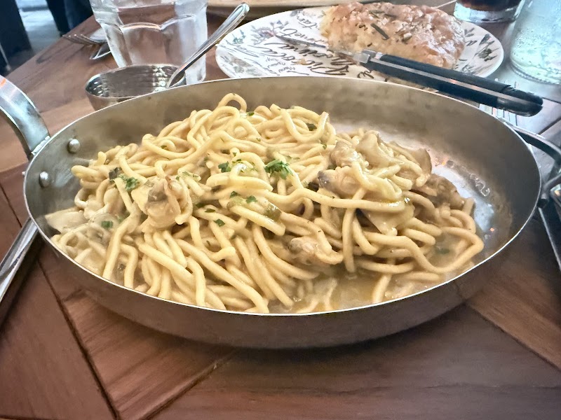 "The food was good, tasted fresh. I would go back. Service was helpful, very attentive. I put the atmosphere as 4 because the bathroom is very tight and smells a bit. I ordered what the waiter told me was good which was the tagliatelle. I love tiramisu, they taste more like like pudding but was yummy. The pasta was a little chewy but softer than expected. The truffle was balanced. The bread was toasted and hard, I used it with the sauce and that was good. Wished it was a little softer."