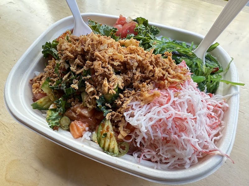 "Was craving a poke bowl and I stumbled upon this place Let me say it’s quick and efficient The poke bowl was fresh and they don’t skimped on the ingredients I got the ahi tune and spicy salmon And the OG bowl with little modifications Also it a place you eat and go not to sit down and have a full conversation."