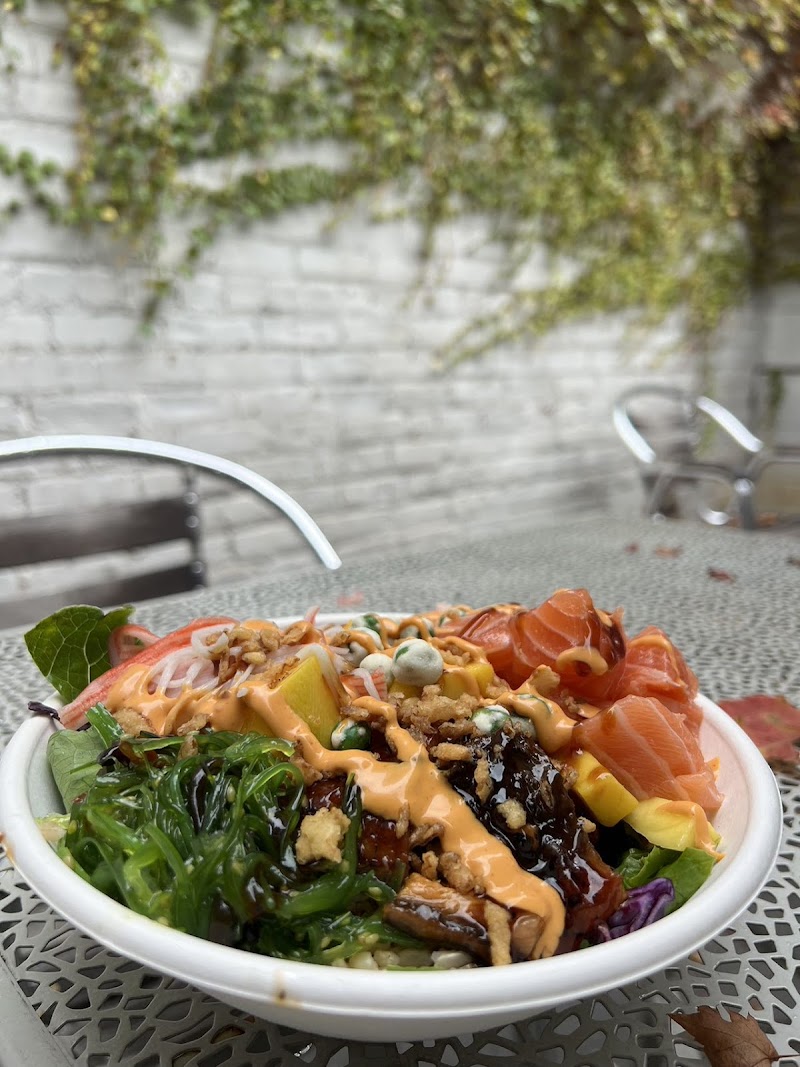 "8/5/25 back for lunch & bubble tea. Another great poké bowl with fresh ingredients. Upgraded to 5⭐ Good bubble tea too- Sat in the "Out Back".... Basic w/comfortable chairs that the GF would approve -ha! 3/5/24 lunch to go: salmon and tuna bowl, sesame shoyu + wasabi mayo (good flavors, next time try wasabi shoyu) Still $3 bubble tea special! But not thrilled with the bubbles sticking together more than normal. :( 7/5 back for lunch. Love the poké bowl! Bubble tea good too. We sat out back, it was quiet and warm, we needed warm after the crazy cold AC at work. 3/21/23 yeah still good for takeout! 12/4 another to-go order, brown rice, salmon and tuna, fresh and good lots of toppings*$1.50* extra for avocado. But $3.00 for large bubble tea when you buy a bowl! That's a good deal. 11/28/22 back for to-go bowl, nice to fill out the order sheet and boom it's done. Still good food. 8/20/21 update: Stopped in for bubble tea. Still friendly service. I think the chairs are different. They have benches now. Really good quality of food. Me & the Gf made our own bowls. I had yellowtail, salmon and baby octopus, all good. Plenty of toppings and fixin's to choose from. Friendly service and a clean store. High tops are nice but the chairs are metal and no backs, certainly not made for hanging around after you eat... Lol Good bubble tea too-"