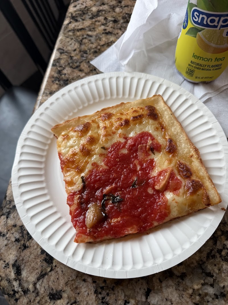 "Romeo’s Pizza Layout/atmosphere *Five tables Food/drink *Regular slice - solid *Grandma slice - solid; garlic cloves"