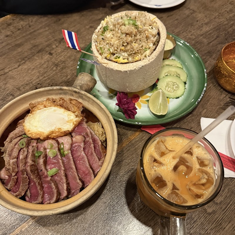 "If you’re getting tired of the usual Thai dishes, this spot near Dumbo is such a fun surprise. Definitely has that street-food vibe, basically heaven for anyone who loves fried goodies and carbs. 🍍 Royal Pineapple Fried Rice Came here mainly for this and it did not disappoint. The pineapple is sweet and fragrant, and the soft-shell crab and fried shrimp are super crispy. The cashews add a nice touch too, wish they were a bit crunchier, but overall the dish is addictive. 🍩 Shrimp Donut Dip it in the sweet & sour sauce and it’s perfect. 🦀 Crab Curry Crispy soft-shell crab with yellow curry is already a win, but mixing it with rice is when you realize there’s so much crab meat hidden at the bottom. Extremely satisfying. 🍗 Rua Volcano Thai version of sweet & sour chicken, comforting and so easy to enjoy. 🥭 Mango Sticky Rice The sticky rice is soft, sweet, and rich because the coconut milk is fully cooked into it. Only downside is that it’s not mango season, so the mango wasn’t the sweetest, but now I finally understand why this dessert is often “summer only” at many restaurants."
