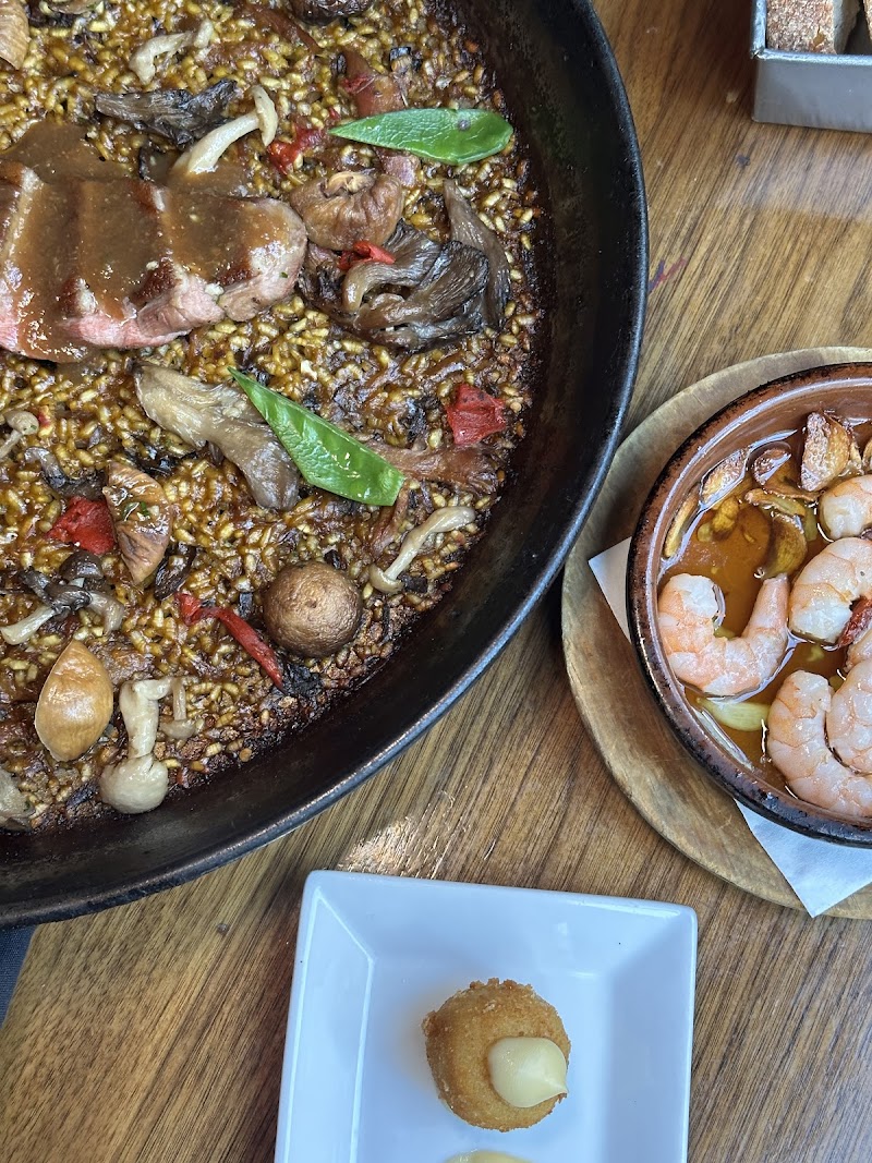 "We had an amazing experience at Socarrat! Everything—from the food to the drinks, music, and service—was fantastic. Our server, Andreu, was so nice and attentive, and he recommended one of the best desserts we’ve ever had. We highly recommend placing your tapas and paella order together since paella takes a while to cook. While waiting for our Socarrat, we enjoyed Pan con Tomate and Croquetas, both of which were delicious—we only wished we had second stomachs to order more! For drinks, the Red Sangria was fantastic, and we also tried the Vino Tinto de Verano, though we personally would’ve liked it a bit sweeter. The highlight of the night was dessert—thanks to Andreu’s suggestion, we had the Torrijas, a caramelized brioche French toast with a citrus-infused milk, crispy edges, and warm, gooey goodness, perfectly paired with vanilla ice cream. The music selection was great, and the lively staff singing along added to the fun atmosphere. The space and tables were a bit small, especially when ordering a lot of tapas and paella, but the cozy and vibrant ambiance made up for it. Highly recommend this spot—can’t wait to come back!"