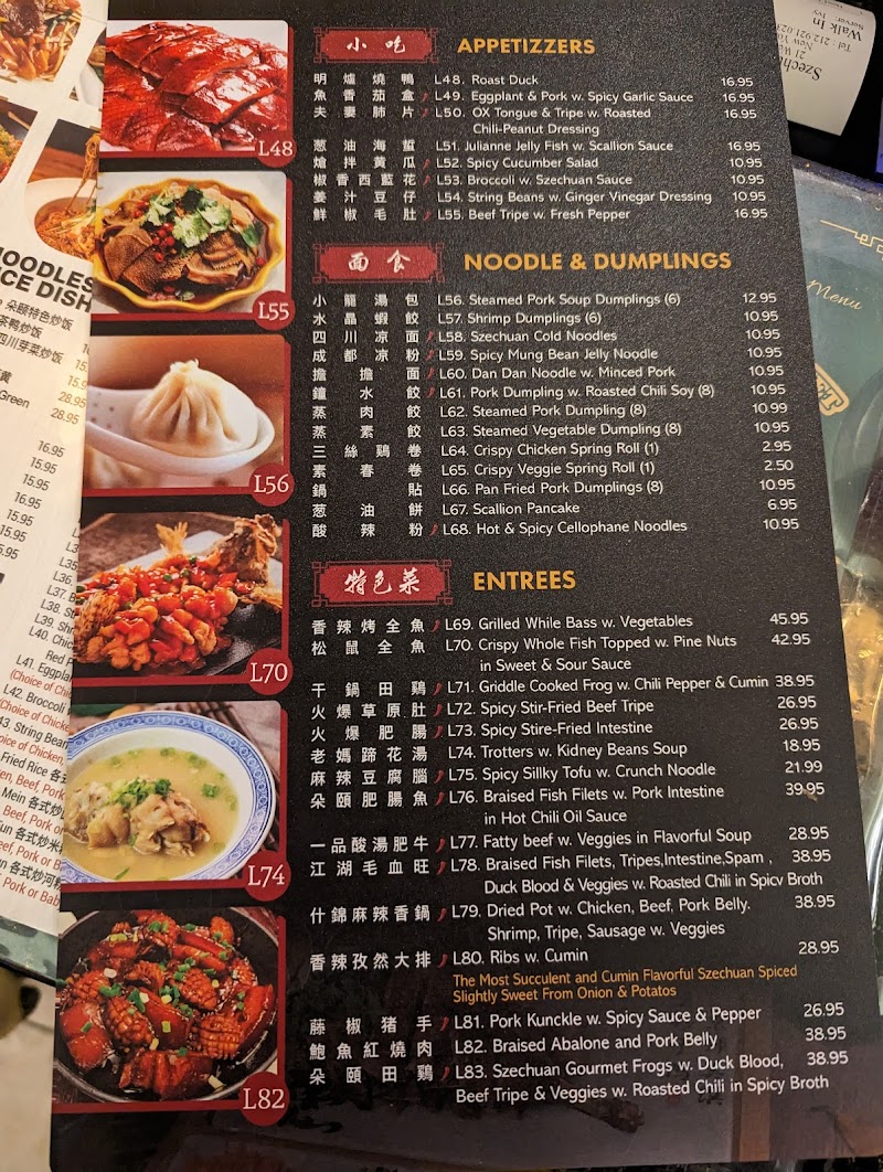 "Came here mostly for their La Ma Ti Hua (老妈蹄花 pig trotter soup). This dish is unbeatable across Manhattan. The rest is decent as well, but not particularly impressive. Pretty solid traditional Szechuan cuisine, could be a bit spicier in my opinion, probably toned down to accommodate the general audience. The fish and duck dishes are also great choices and I highly recommend anyone who hasn’t tried it give it a try here - they’re tender and flavorful, not too spicy and not too many bones. Worth giving it a shot"