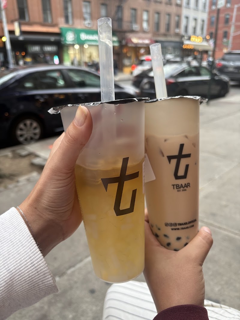 "Tbaar is my favorite bubble tea spot across all boroughs. I order the standard milk tea (black tea base) with boba from all bubble tea places, and Tbaar holds as my favorite. It's got a little something extra with a sweet, roasted flavor and the boba itself is solid. I usually get 50% sweetness with every drink, as their fruit tea is also nice, specifically the aloe grapefruit. Lucky to have it in Park Slope."