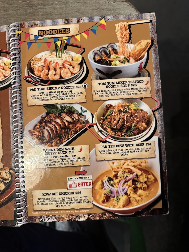 "Gem NYC spot for Thai food, I always come back for their drinks and Green Curry. Clean bathroom. Friendly staffs. Great indoor scenery & birthday vibe (somehow there's always someone's birthday everytime I come here btw). Near West 4th St's A B C D E F M station & Huston St's 1 station Thai Ice Tea (small) $6 Ginger Fizz (small) $7 (large +$2) Fried Calamari $16 Spicy Basil Fried Rice (with shrimp) $26 Green Curry (with Chicken) $25 Pad Thai (with Chicken) $25 IF YOU PAY WITH CASH, YOU WILL GET 10% CASH DISCOUNT."