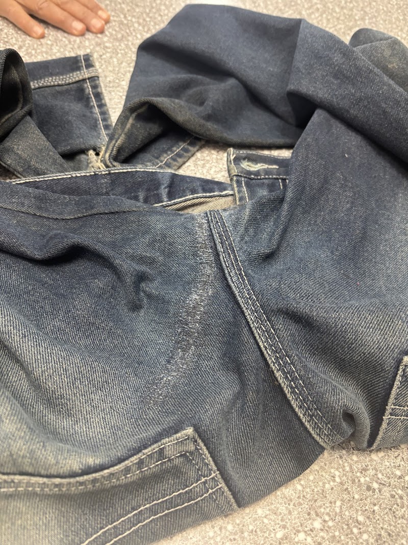 "Came in for a fast hem for my pants. They told me no problem pick up in 30 min. I came back in 30 min to this 😲. I paid $30 for this. Unbelievable. I'm gonna have to get it redone for MORE money. If you can't finish and do a good job (for a simple hem) in 30 min why wasn't I told that it would actually take longer. Avoid this one guys. Soo disappointing."