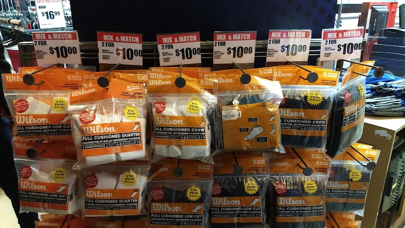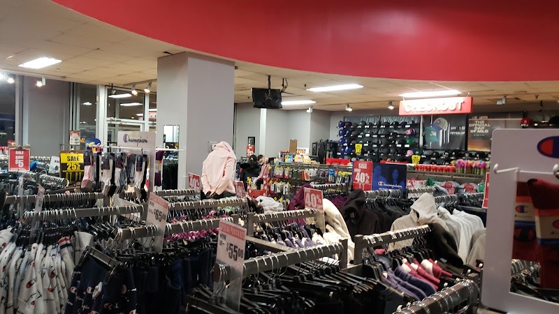 "Small bilevel sporting goods chain store. It has a varied though limited stock. Street parking is limited and the garage attached to the mall is for just the mall. Prices for the clothes and sneakers appears to be within reason. I do recommend this store as a first stop for sporting goods and clothing."