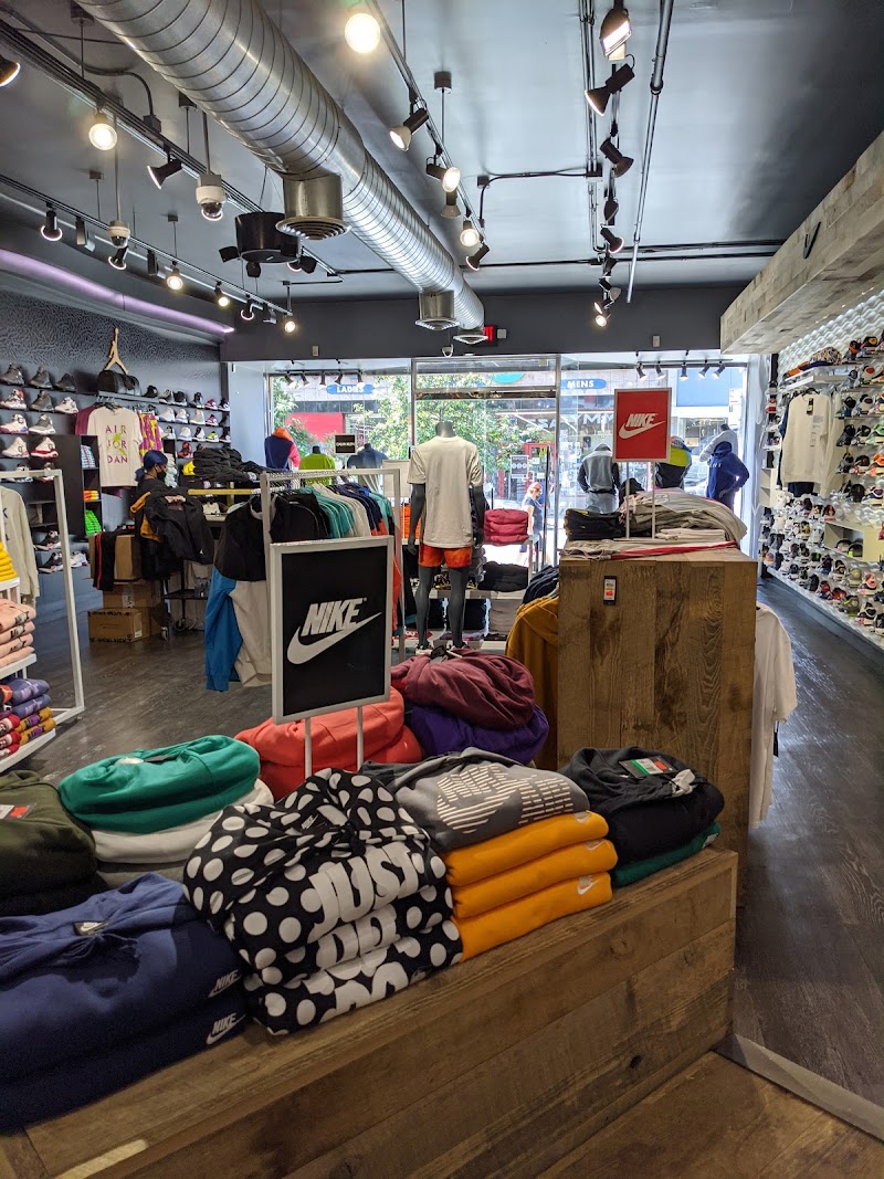 "It's nice to have a real sports store in the neighborhood, especially with the gym that opens today just next door. I was disappointed that they didn't carry women's sizes under a size 6.5 in most of the shoes I wanted to try, and there were only two employees to help get sizes out of the back to try on, so the wait was super long. I ended up purchasing a kids' size running shoe in size 5 because of their women's size selection. They only let you try on one shoe at a time because they don't want you to steal them. They do have awesome legit brands tho that I wouldn't be able to find in the neighborhood otherwise tho, store is super clean and new."