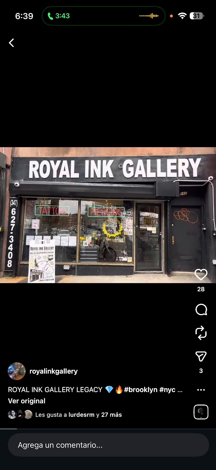 "I had the pleasure of getting a few piercings done by Angie and I couldn't be more impressed with the experience. From the moment I walked in, she made me feel comfortable and at ease with her warm and friendly demeanor. She is incredibly skilled and professional. She took the time to explain the entire process, answer all my questions, and ensure that I felt confident and informed before proceeding. The level of care and attention she provided was truly outstanding. First piercing I got with her was my nose, then my 3rd and 4th lobe. Super painless and fast. Overall, I am beyond thrilled with my new piercings and the fantastic service I received from Angie at Royal Ink Gallery. If you're considering getting a piercing, I highly recommend seeking her out—you won't be disappointed!"